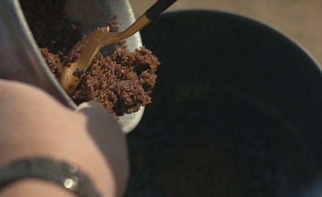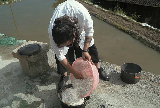 我沿途问当地的居民,谁家有做糍粑的工具,找到了这位奶奶家。年轻的父母出门干活了,奶奶带着孙儿们在家里。听说昨天家里刚杀了一头猪,锅里熬着猪油,脸上喜气洋洋。
