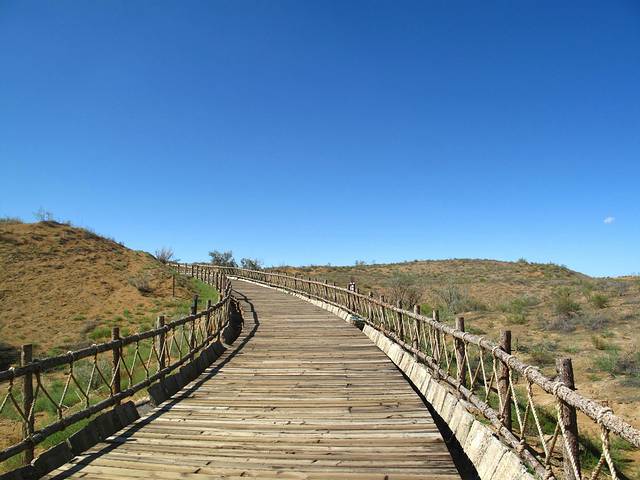 打电话给司机过来接,因为通湖草原就是沙漠中带点小草原,门票又贵,所以就没去,直接去沙坡头。本来已经玩了沙漠了,觉得没有必要再去沙坡头了,门票又贵。但晚上的火车票是10点多的,又没地方可去,来都来了,沙坡头这么有名就去一下吧。沙坡头一般正规入口就是从北门进去的,也就是从黄河区进去。门票90块。目前游客中心的摆渡大巴是免费的,听说以后会收费。黄河区进去后有电瓶车带进去,买票的。本人体力好,能走,而且也不是很远的,沿着黄河边看看景,走走路不是也蛮好的嘛。反正从黄河区到沙漠区就是三种方式,一是自己走路,二是坐电瓶车,三是坐羊皮小船。羊皮小船的价格很贵,而且要排队很长很长。反正我觉得走路不累。中间会有个横跨黄河的桥,桥中间是玻璃的,人在上面走,买票的,可去可不去。继续走,接下去会看到一个横跨黄河的飞索,这个项目真是很刺激,很不错,高度非常高,跨度很大,整个横跨一段沙漠和黄河,个人觉得黄河区就这个项目是值得玩的,本人胆小,没去。飞索的旁边就是高度100米的滑沙,好像是60块钱。100米是真的高,看着很吓人,其实你坐的木板是限速的,你实际下来时,速度没你想象的快,不会很吓人。我是坐扶梯上去的,免费。上去后才是进入沙漠区的入口,景色很美。沙漠区我前面已经讲了,到处是设了隔离线,游人在游玩沙漠时,是很受限制的,走了一段就觉得没意思了,因为上午已经玩了沙漠了,所以此时对沙漠已经不是那么有新鲜感了。出了沙漠区的景区出口,打电话给司机让她来沙漠区的出口来接,不然要回到黄河区的正大门要累死人。包车一天价格是60元,1-4人都一个价。如果人多去腾格里,让司机免了包车费,反正对方能拿回扣。注意:我们基本上游玩的时间都会在正午,此时太阳非常猛,一定要做好防晒,男士的话,户外遮阳帽一定要带,再热也要把皮肤衣穿上或套上袖套,不然会脱皮,还有最最重要的是水,最少每人要两瓶水。回市区吃饭,晚上去火车站,坐十点多的火车去西宁,第二天早上七点10分能到西宁。中卫火车站大厅非常小,感觉就是小镇上的站一样,建议不用过早进去,里面又臭又脏。
