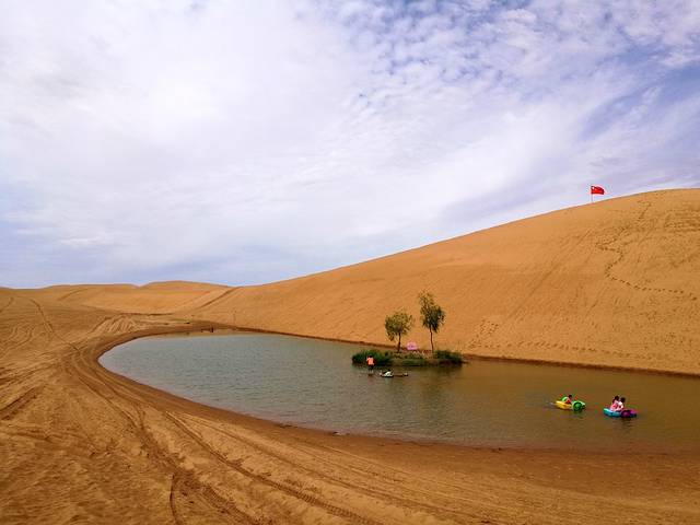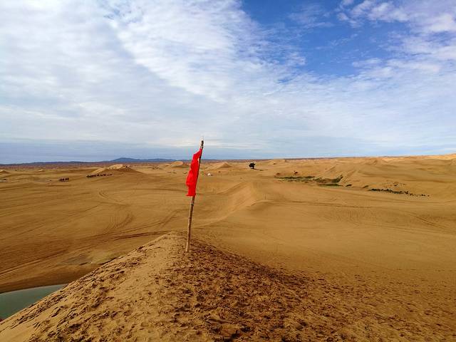 第5天:一大早去火车站门口,本想去坐沙坡头的大巴。结果不知是不是太早了,居然车上没人。有个出租车女司机过来搭话拦客,她提出的是60块钱包车一天,可去内蒙的腾格里沙漠,通湖草原,宁夏的沙坡头三个点。但不是这一天一直等你的,你玩好了出来打电话给她,她过来接你去下一个点而已。之前看了腾格里沙漠的介绍,觉得多去一个点也是好的,就同意了。在进入内蒙境内时,在界线牌处,司机帮我拍照。腾格里沙漠的大部分是内蒙的,有小部分是宁夏的,沙坡头就是属于宁夏这部分的,因为爸爸去哪儿节目,沙坡头现在非常火热。腾格里沙漠的点其实是内蒙那边的私人搞的,没有算你入场费,就是进去的所有娱乐项目,包括沙漠越野车,沙漠摩托车,骑驼骆,滑沙在内,总共要200块的娱乐项目费,只有这一种收费方式。后来得知司机带我过去是有回扣的,不过无论有没有司机带过去,我们游客都是要200块的。我是这么认为的,反正我们花的钱是一样的,只要项目好玩,开心,你管别人有没有回扣呢?!在里面听驴友说,中卫很多黑车或出租车都喜欢带游客来这儿拿回扣,如果超过两个人,甚至愿意免包车费,因为我就一个人所以不大可能。我觉得免包车费的,人家已经拿了回扣了,中间或最后司机要是不来带你咋办?我个人不认为拿回扣就是黑,腾格里没沙坡头名气大,只有通过这种方式来吸引游客来消费而已,跟打广告费道理是一样的。后来玩下来,实际证明这儿是好玩的,娱乐项目也比沙坡头便宜些,沙坡头可是要门票再加娱乐项目费用的,当地司机也不是为了赚钱就随便介绍个烂景点给游客的。