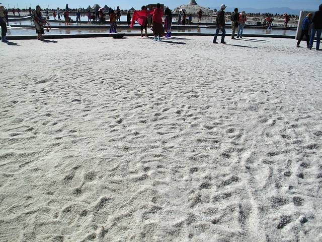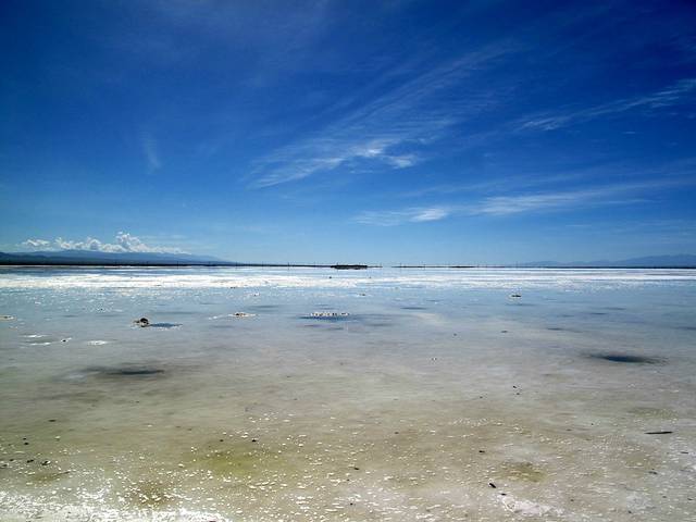 今天的行程是茶卡盐湖—克鲁克湖—德令哈。茶卡盐湖是个非常大的著名景区,绝对值得一去。门票80.司机小王告诉我,凭浙江人的身份证可免费从VIP通道直接入园,可能是因为建景区时,浙江人有投资吧,具体什么原因他也不知道。我走过全国这么多景区还是第一次遇到这次待遇,太有家乡的荣誉感了。到景区大门,买票要排长队,入园也要排长队,人山人海啊。没看到司机小王说的免票信息,我就直接去景区入口处问工作人员,得知是到旁边的一个专门的通道登记名字和手机号后直接入园,不用排队。我就真像个VIP一样几秒钟就进去了,再看看后面那些排队又要花80块钱的游客们,心里那个酸爽啊。呵呵呵。不知是不是为了免得其它省游客看了不爽,景区门口没写浙江人免票,如果不是司机小王告诉我,普通游客根本不知道。景区内是要花5块坐电瓶车进去的,小火车要50块。我是坐电瓶车进去的,后面发现其实不远的,走几分钟就到了,虽然只有五块钱,但觉得没必要,回来时就不买了,直接走路。景区人的风景还是很美的,全是盐碱,附近路上还会有很多盐碱厂。在途中遇上个武汉小伙子,跟我一样是独自出游的,就一起走一起聊。他跟我一样也是七天游,所以在接下去的行程里,他跟我走的全是一模一样的。