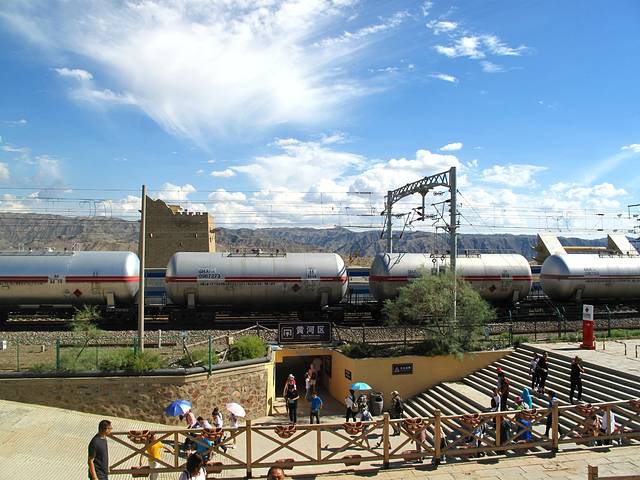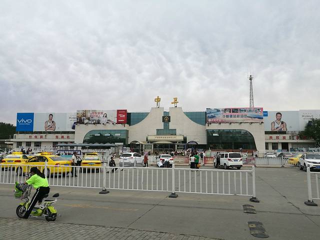 中卫火车站,我见过最小的火车站了。去沙坡头的大巴在照片的右边