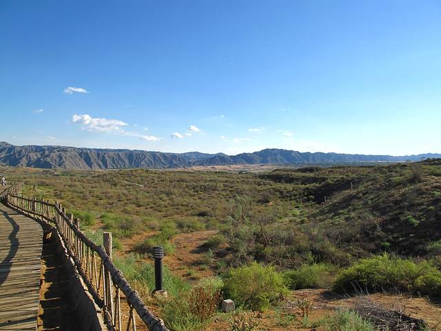 第2天:早起去酒店对面的旅游汽车站,里面有一个汽车站自己搞的类似旅行社性质的圆型柜台,可查各个景区的资料,可去银川所有的景点,可买门票也可单买车票。本来今天计划是想去西夏王陵的,结果西夏王陵太冷门了,没人去,凑不了人数不发车。只好临时改去水洞沟。直接跟车站买景区的门票,跟去哪儿APP的价格是一样的,还可免单程的大巴费15块。建议直接在车站买门票。后面发现其实是因为水洞沟相对其它景区去的人不多,所以在搞竞争,才有这种优惠。门票是130元,包括了大门票,中途的船,驼车,驴车,藏兵洞等所有的费用。水洞沟其实就是在这儿发现几万年前人类生活遗迹的地方。在坐驴车和驼车时,车夫会唱民歌,然后全车十来个人要一共给5元小费。中间有段古长城,长城的另一边就是内蒙古境内,有一段芦苇地很漂亮,最后的重中之重是藏民洞,这个是此景区内我认为最值得去的点,明朝修建的防御工事,里面有几公里,非常好玩。注意:玩藏兵洞时,要紧跟着景区安排的领路小伙儿工作人员。因为进去之前跟小伙儿闲聊了几句,小伙照顾我,偷偷告诉我:进去后要我一直紧跟着他,不然没意思的。后来发现进去后路很小,只有离小伙子最近的几个人能听到他说话介绍,好玩多了,后面的人就只是在走路而已。出景区后,能看到来时的旅游汽车站的大巴在那儿等,回去可是要买车票的。这大巴回去的时间不固定的,来时先问问,好像最晚的是三点的,这还是旺季呢,如果是淡季就麻烦了,只能自己包出租车回市区了。银川的各个景区离市区都很远,淡旺季区别很大,除非你是包车,不然的话,要注意大巴车的返程时间。个人认为这个水洞沟还是值得一去的地方。去之前看了沙湖景区的介绍,觉得没什么必要,因为后面行程中多的是沙漠,而且沙湖的门票很贵。