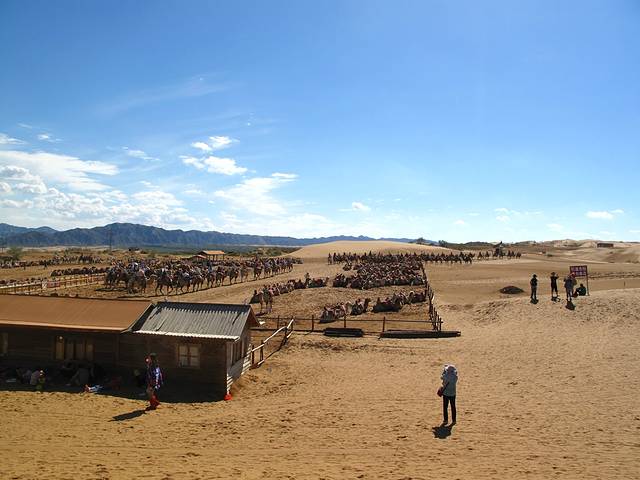 带游客进入沙漠的就是大型解放车货车改装的,能坐20人,在沙漠里过山车一样,非常好玩,刺激!然后是自己开的沙漠摩托车,能开的路途蛮远的,这个项目很不错!骑骆驼嘛也就那样,就是比骑马更高,就体验一下,骑的路程比沙坡头要短。滑沙的坡度要远远低于沙坡头,但这里是随你玩N次。这里的沙漠玩的是个原始,没限制,随你走,随你玩。不像沙坡头,到处给沙漠项目划了区域,游客能自己游玩的地方很小,很受限制,你不可能走很远。从自由纯玩沙漠来讲,建议去腾格里,反正我对沙坡头的印象不好。但是沙坡头是5A景区,设施比较好,比如厕所之类的,你要带着老人,孩子,爱人的话,那还是去沙坡头吧。因为带游客进来的越野车太激烈刺激,腾格里景区有安排小型越野车带老人开小路进入沙漠。在沙坡头,超过60岁的老人是不让玩项目的。但在腾格里,你商量商量还是可以的。呵呵呵。我大概玩了三四个小时才出来,个人对腾格里沙漠这个景点很满意,只从沙漠的可玩性来讲,比沙坡头要好。骑骆驼时一摇一摆的,你是很难拍照的,也没人能帮你拍。不过在我们自己开摩托车和骑骆驼的中途,是有工作人员在途中拿单反机给每个游客拍照的,之后可以去营房电脑上看自己的照片满不满意,满意的话,10元一张,现场打印照片出来给你。