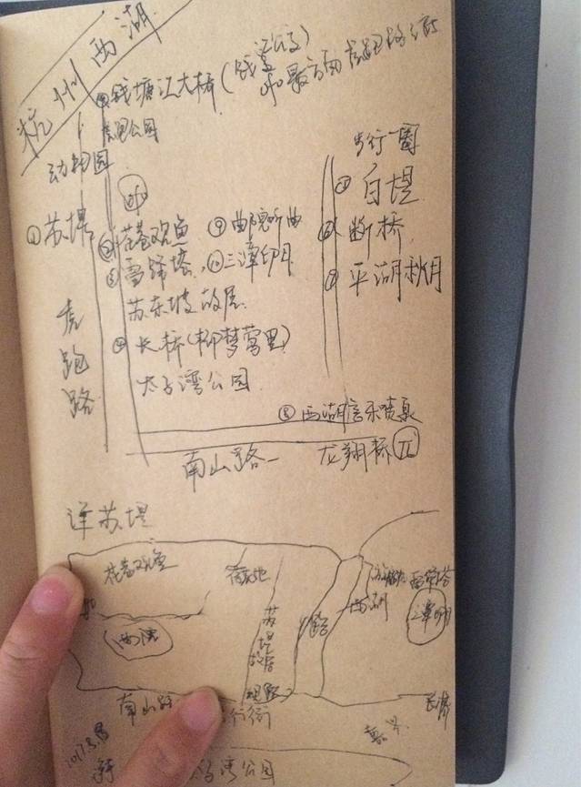 这张图是我还在路上的时候画的,西湖十景不是特别清晰,但是景点位置还是相对很齐全的。