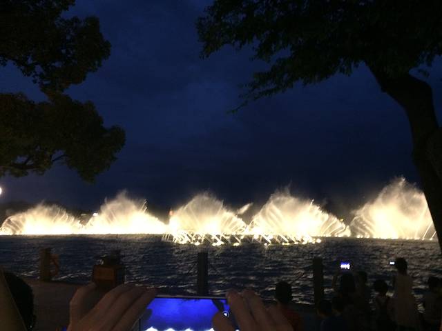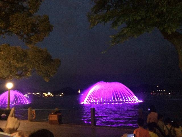 这部分属于白堤部分,首先坐车到龙翔桥,还是踩公共单车或者打车到白堤,一路沿着白堤就可以到达断桥残雪、平湖秋月。路很长车不能进,只能走路,路有点远好好走。逛完白堤就回到龙翔桥地铁口,直走就可以看到西湖,这里就是西湖音乐喷泉,晚上7:00或者8:00有两场音乐喷泉。看完就可以逛逛步行街然后回酒店睡觉啦。写游记才发现晚上去白堤很吃亏,照片都很不清晰,明智点白天去。