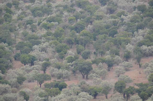 再向前,草原消失了。密林毫无征兆的出现,一片一片全是树木。但因为是在干季,只有少量的树木有嫩绿的叶子,其它大多都有些干枯。