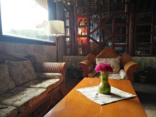 大厅很特别,就是典型的非洲民居的那种,进去后才发现这个酒店很豪华,也很特别,整个大厅全都是木质的,还悬持着一些牛头饰物,木雕的大象就在门口迎宾。听网上说非洲的木雕很好,一是材质好,最好的是乌木,也有非洲黄花梨,但是我们不懂木材,只是能看出这些动物真是是手工雕刻,因为刀斧的痕迹很明显,不像机器那样圆滑。