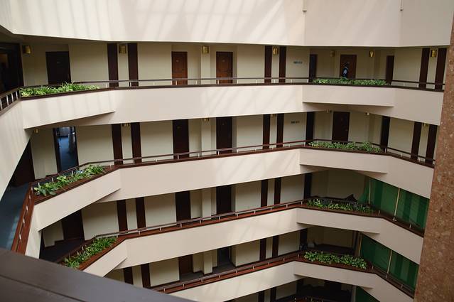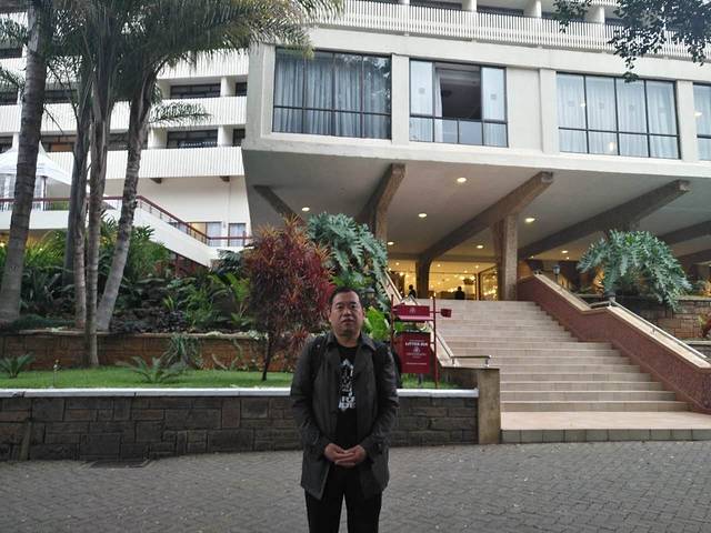 回到内罗毕的酒店,极其豪华,标准的双人间,还有一个阳台,可以眺望内罗毕。另外特别说明的是,来时一些攻略上肯尼亚酒店不提供一次性拖鞋及洗涮用品,结果我们住的这两个酒店都有,而且房间里有保险柜有冰箱。酒店前面种了许多椰子树,还有人造的水景观,后面有人工游泳池,晚上可以坐在池边喝点当地的啤酒,也是一种很好的享受。内罗比整个城市在一片绿色中,郊区还有一个面积达100多平方公里的国家公园。内罗毕的气候比较湿润,下午去眺望这个城市,令人心旷神怡。