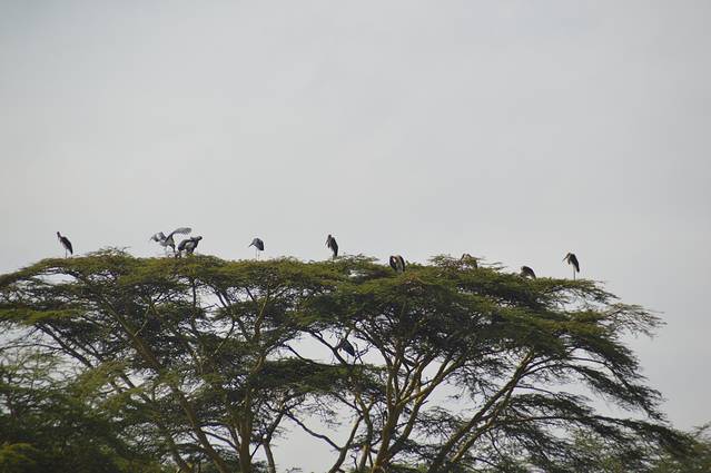 路边又出现了几只大象。它们的耳朵很大,甚至可以盖住它们的头。还有一只角马尸体旁,围着上百只秃鹫和那种像大将军的鸟。秃鹫吃东西缩着脖子,真猥琐!难怪它们都是阴险的代名词。