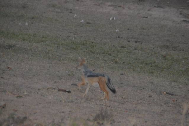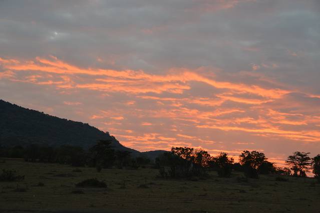 太阳愈升愈高,草原上的动物开始活跃起来,角马开始在奔跑,而我们要回去吃早饭了。