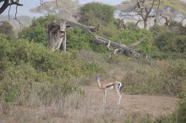 又过了几个桥,风景一变,属于草原的风光出现了。依然是稀树草原。但与安博塞利大不相同。首先,这儿树木有许多,有些地方形成了大片森林。其次,同为草原,安博塞利的是干草、枯草,为金色。这里是绿草,而且可以看到大片大片的牛羊。一看这里就比安博塞利湿润许多。