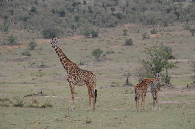 路边又出现了三只长颈鹿,一个妈妈两个宝宝。长颈鹿宝宝很小,个头只到成年长颈鹿的后背,不过它们可爱极了!一见到我们,立刻害羞地跑开了。还上演了温情一幕。哥哥在那儿给妹妹打理脖子上的毛发,好不温馨!
