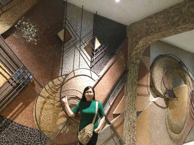 首先是走过一个长长的走廊,走廊很特别,特别在走廊的形状很特别,是用剑麻叶子搭成的长长的草棚子,路面也是一个个不规则的石片铺成,走廊两边种着一种奇怪的植物,一开始我们以为是虎皮兰或芦荟,因为形状很像,但是后来我们试着折了折,不出水,很硬,而且每片叶子的长度与高度远远超出这两种植物,我们站在它旁面合影,它们远远超出我们的身高。