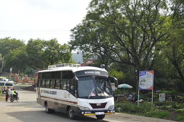 内罗毕效外,颜色各样的公交车挤在一起,司机与售票的大声吆喝着,很有点像我们80年代乡镇公共汽车拉客的样子,不同的是,肯尼亚的公交车颜色特别鲜艳,正如这个民族与国家一样,虽然房子与穿着不是太好,但是各种鲜艳的色彩都敢用,都敢穿,所以房子常是绿色的、粉红的、黄色的、紫色的,同样他们的衣服也是如此,黑黑的皮肤衬着各色鲜艳的服装,有点滑稽,但似乎又恰当其份,黑,所以才穿得鲜艳吗!