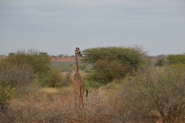 公园的票价是60美元,16岁以下半价,需要用护照证明。买了票,进入公园,景色并不是很,可能是旱季,两边全都是黄色的草皮和一些并不高大的灌木,但是不时现出来的金合欢树,如伞盖一样亭亭玉立在稀疏的草地上,映衬着远处的蓝天白云,当年初中课本上的经典画面便一下子穿过时空的距离展现在面前。