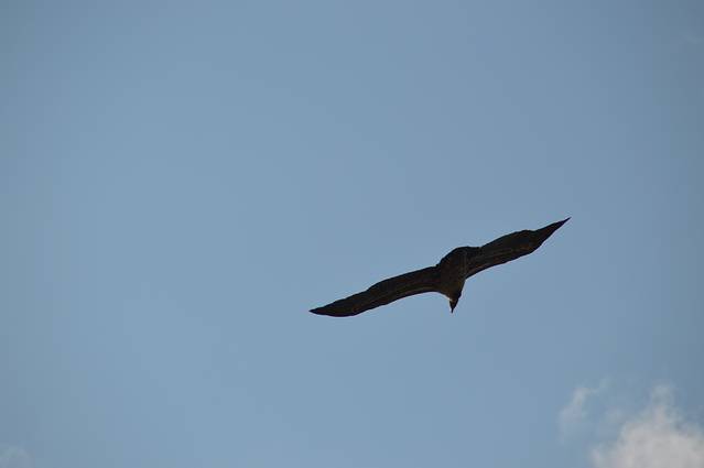 天空中的云真是棒极了!没有一丝风,它们也一动不动,比雪还白,比棉花糖还软,天空也很干净 ,碧蓝如洗,蓝天白云,这在城里,已多久 不见了?白云中有几个黑点,那是苍鹰!它们飞得很高,真的飞入云霄了!它们也不扇翅膀,只是张着翅膀,乘着上升气流,在空中翱翔。那么多!足有十几只秃鹫。它们或横或纵,或直或斜,铺满了天空。