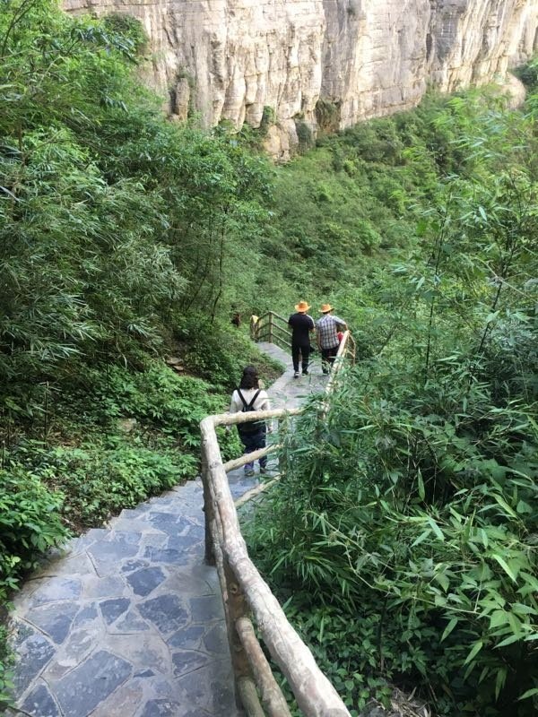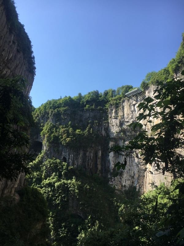 进门之后,顺着楼梯往下走,到观光电梯的地方直接坐观光电梯下去(听说景区高峰期的时候等电梯都要两个小时,可见错峰出行的重要性!!