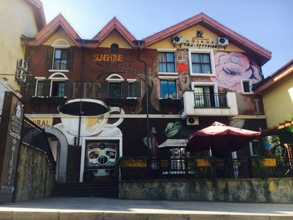 酒店是在去哪儿网上订的。非常方便,就在游客中心旁边。咖啡主题酒店!