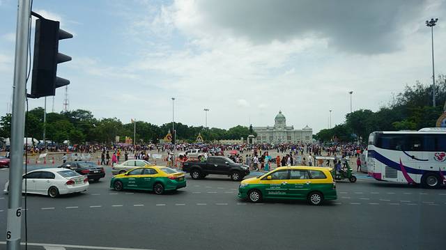 经过三个多小时的飞行终于抵达曼谷机场。由于我们是落地签,需要自己排队去Visa on Arrival柜台。也很快,盖章安检就入境了。打开手机调整时差,曼谷应该是比国内晚1个小时。行走不多时导游在前面出口等候我们。每人接受泰国简单的迎宾花环后上车就坐,一个讲着不熟练的泰国男导游向我们介绍基本情况。他的普通话实在是太糟糕了,而且语速很慢,不成句子,停顿点不对,着实让人难受。他常对我们也对自己说“再阴阴”嘛(不要着急),泰国的节奏是很慢的。我原本想好好地去听一下他的介绍,顿时没有了兴趣,就自己玩手机了。大巴行走一段时间后之后于泰国时间11:49分抵达泰国城市中心附近一家星级酒店(H5)。我知道泰国处处都要给小费的,所以尽量自己拿东西。不是舍不得小费,实在是没有养成这个习惯。况且自己本身也是工薪族。大巴抵达之后,我就去拿行李,可人家泰国小哥就是不愿意呀,虽然语言不通,但我知道他不许我自己拿。好吧,等他送上来。办理了入住之后,我在房间等待行李的到来。不多时那小哥推了一大堆行李,正一个房间一个房间地送。我知道肯定是要给的,于是准备了20泰铢。拿完行李,我迟了一下给小费,主要是滑反应过来。那小哥马上比划着钱钱的手势,我慌忙给他了。进房一看,大床一个,有独立卫生间,有电视、写字台和沙发等,整体感觉舒适、宽敞,一切都觉得值了。