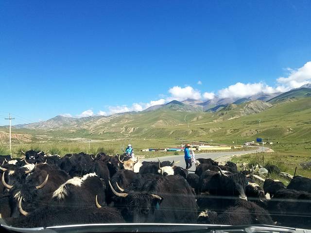 去八一冰川路上,过马路的牦牛