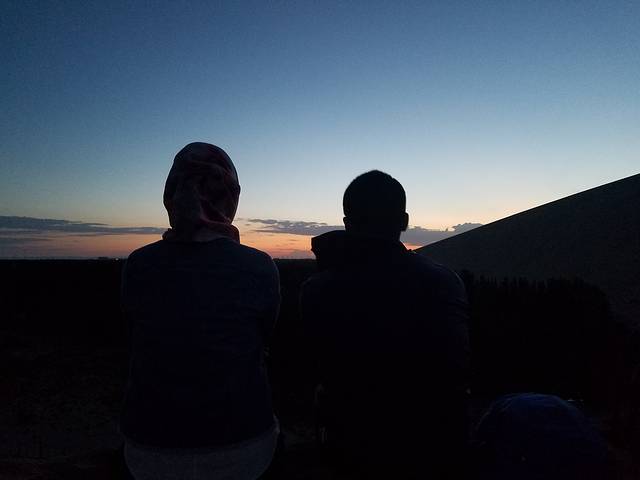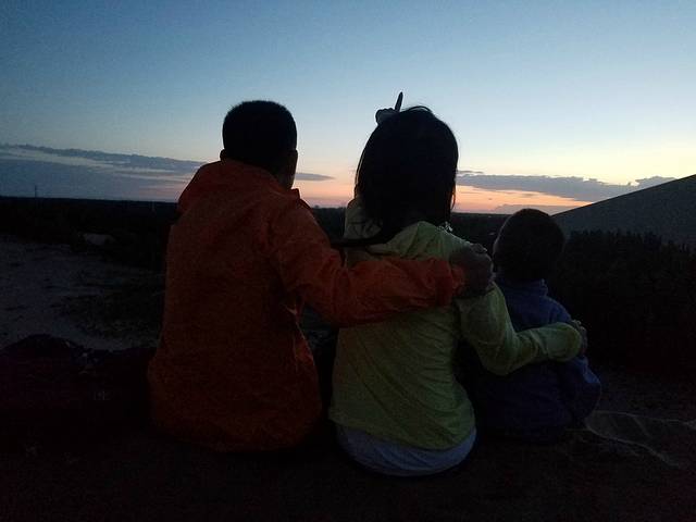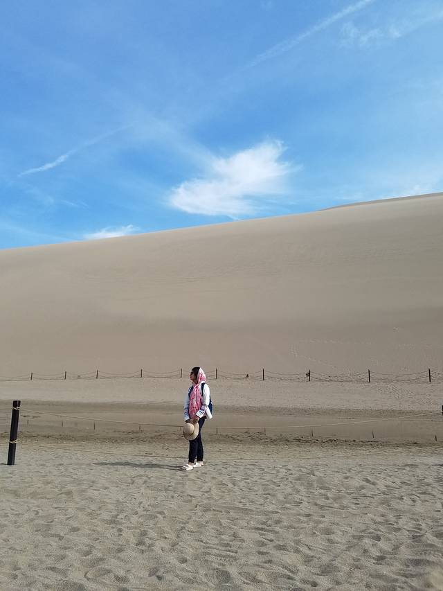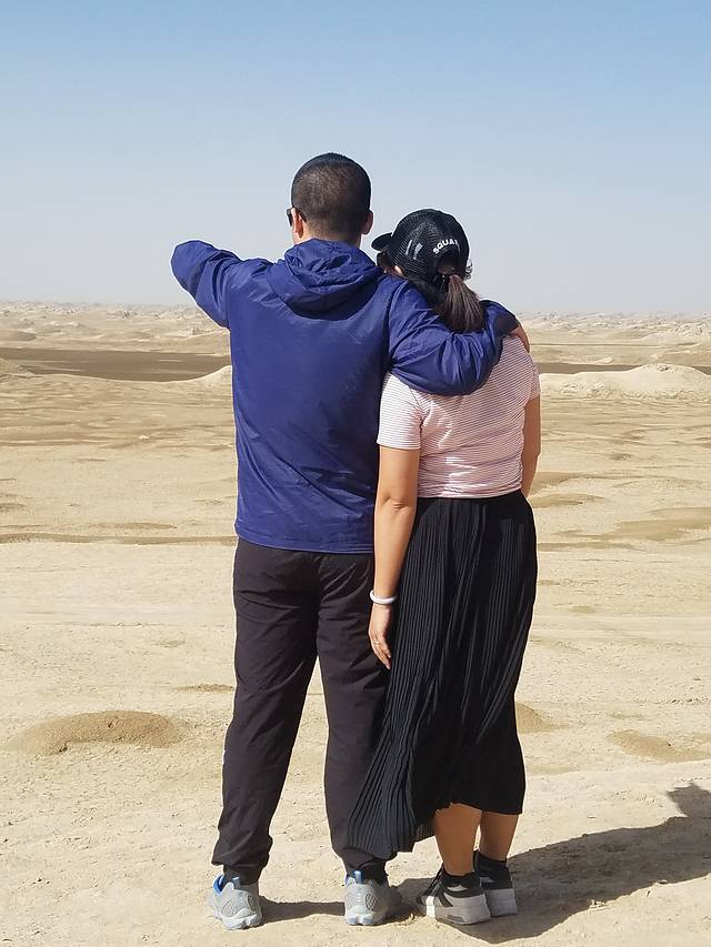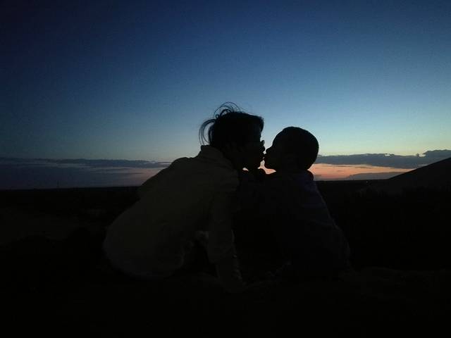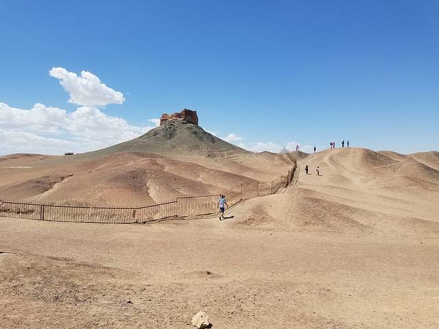 D6(8月8日),沙漠日出,露营点玩沙,出游阳关,住大漠驿站。经过青海湖日出的失败,今天摸黑起来看沙漠日出。到了五点左右,被周围的嘈杂声吵醒,叫醒BB,没叫醒TT,5大1小沿着“前人”的足迹往沙山顶部爬。第一次在这么软绵绵的沙子上面走那么长的路,才知道原来在沙子里面走路是这么困难的,深一脚浅一脚的根本无法发力。一开始还穿着拖鞋,后来把鞋脱了,手脚并用才爬上其中一个小沙山,远远看到有人爬到最高的沙山上面去了,我们没再往上爬,就地等日出,要是往上爬,估计还没爬到太阳公公已经出来了。幸好是沙子,小孩喜欢,BB也跟我们爬上了小沙山。远看着东方鱼肚白,然后是彩霞,太阳就是不出来——谁叫我们登上的不是最高处呢,哈哈。网上查到的日出时间过了好久,我和BB实在没有耐心再等下去,提前以滑滑梯的姿势下了山,回到帐篷附近一个更小的沙坡玩起了滑沙。随后大人们也下来,第二次日出失败。滑沙才是最好玩的。估计跟我们一起露营的都是报了旅游团的,早上7点多,他们又坐车去了其他地方,整个小沙坡几乎只剩下我们几个人在撒野,大人、小孩玩得不亦乐乎。转眼到了8点多,在露营的地方做了简单的洗漱,联系了晚上住的大漠驿站,提前过去拿了两间房用来休整。整理好了就在楼下吃兰州拉面,店名忘了,还挺好吃。吃完早餐往阳关出发,没错,就是“劝君更尽一杯酒,西出阳关无故人”的阳关。在网上买了票。从大漠驿站出发,开车不算太远,在路上可以望见远远的雪山,估计是阿尔金山。经过阳关镇,道路两旁很多葡萄园,也有很多当地人在两旁卖葡萄,买了几斤。到达景区前见到了很多葡萄干晾晒房,木结构的,有意思。到阳关一游,了解其历史的意义远大于浏览本身。到了阳关,才知道张骞出使西域的魅力,才知道汉武帝开疆拓土的伟大,才知道丝稠之路的艰辛。景区配了导游,只要游客凑齐一定人数可以免费讲解,也可以小团聘请,需额外收费。到烽燧需要选择交通工具,电瓶车、驴车、骆驼、马,价格不一。转完阳关景区已是中午,就在阳关镇吃了午餐。午餐后又找回卖葡萄的老板娘,去她家葡萄园现摘,葡萄园很大,各个品种都有,老板娘还养了兔子、鸡、羊,想着跟她商量晚上能否在她家吃农家饭,她说她得卖葡萄,哈哈。顺手买了点葡萄酒,晚上可以小酌两杯。想着玉门关性质跟阳关差不多,便没有再去。回到大漠驿站休息,晚上就在楼下吃饭,葡萄美酒羊肉串,倒是惬意。今天不赶,早早休息。