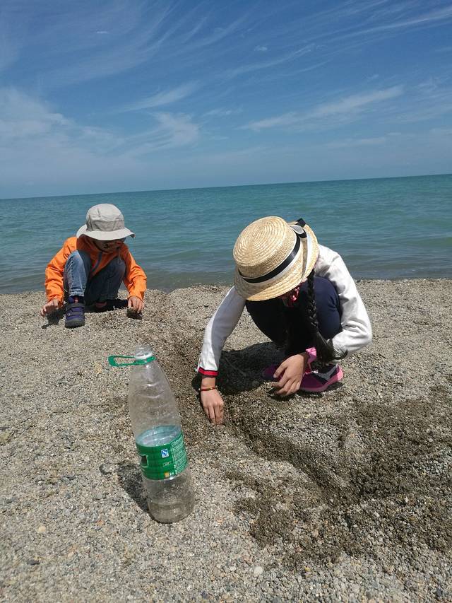 天鹅湖边玩水玩沙