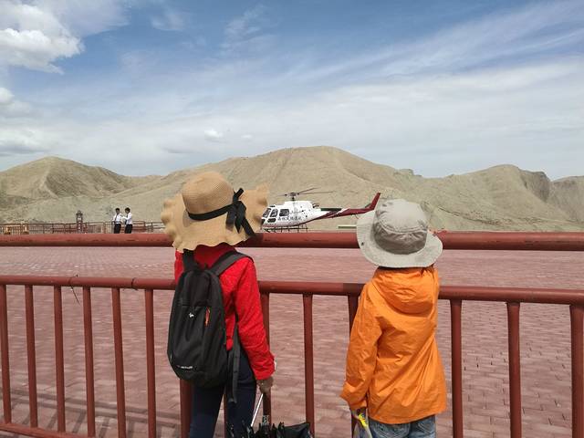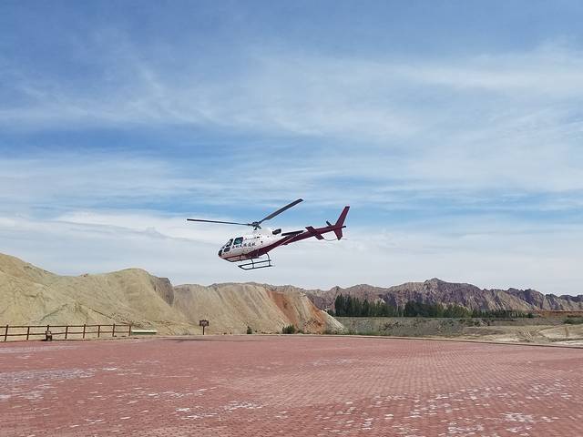 七彩丹霞的观光直升机,右边可以看到睡美人的头