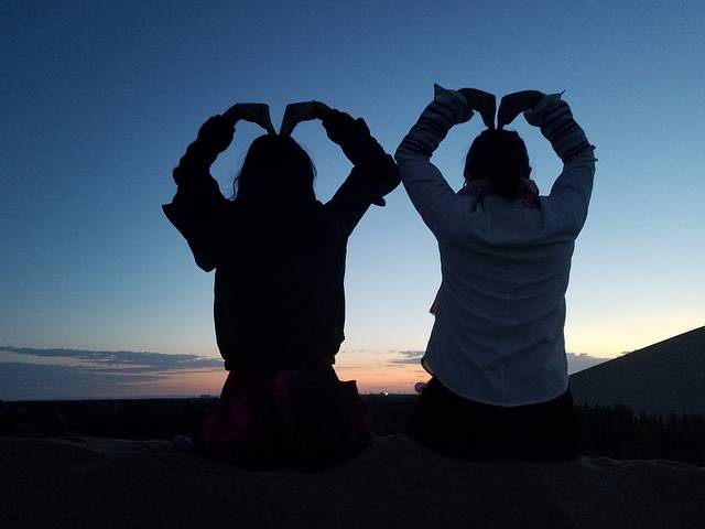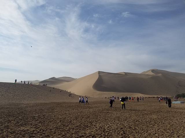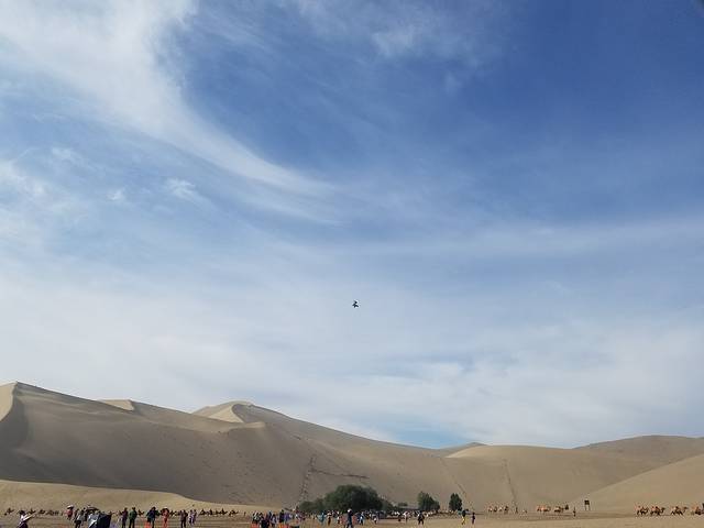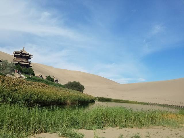 D8(8月10日),鸣沙山、月牙泉,出发张掖,入住张掖西北民俗客栈。这天上午去鸣沙山、月牙泉,鸣沙山门票可以管用3天,因为行程原因,我们只花了半天时间进去。进去前说是要速战速决,好有充裕的时间往张掖去,进去后还是玩了好几个小时。BB在门外买了沙滩玩具,走到一处便和TT玩起了沙子,B妈看着他们。其他大人往月牙泉去。月牙泉的水面已经非常小,据说现在还是天然的地下水,并没有像有些人说的那样是抽水进去的。为了保护景区,有些沙山有围栏,但还是有不少人越过围栏去拍照。真希望游客能遵守规定,保护好这些景点,不加于保护,像莫高窟、月牙泉这些地方,也许多年以后就不复存在了。在哪里见过“不要让敦煌成为第二个楼兰”。知道月牙泉是因为田震的歌,多年以后一睹芳颜。大人看了月牙泉,小孩玩了沙子,便去排队坐了骆驼,感受沙漠漫步,不知不觉便到了中午。赶紧回酒店收拾,出发张掖。据说瓜州的瓜很出名,于是便选择在瓜州下高速吃午饭,找到了一家东乡清真餐厅,味道不错,不贵,好评,彼时已经快下午4点了。吃完午饭在路边花30多块买了四个瓜,继续往张掖赶去。在高速公路服务区,又花了10元钱,跟运西瓜的大卡车司机买了3个西瓜。路过嘉峪关,将近晚上9点半到达西北民俗客栈。在旁边的西宁餐厅吃了晚饭,好评!办理入住手续。西北民俗客栈是个非常有特色的客栈,装修带着浓浓的西北气息,干净又舒适,大人小孩都很喜欢,当晚睡得很好。