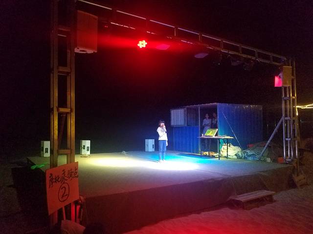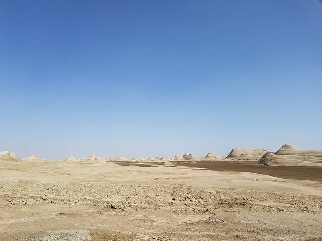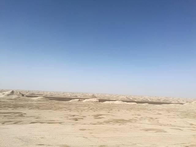 D5(8月7日),前往南八仙雅丹、水上雅丹,开往敦煌,晚上沙漠露营。早上就在酒店旁边的餐厅吃早餐,酒店提供的。早餐后开往南八仙,在鱼卡下了高速后,走省道不久即进入柴达木盆地,两边一望无际,一片荒凉,路上只有来这里旅游的车,还有一些油罐车,两边偶尔会出现一些矿区。又是一路走走停停,到达雅丹地貌比较明显的地方,跟着一些车离开省道往两边走,沿着车轮压出来的路,到达雅丹腹地,登上雅丹土堆高处,远望整个壮观的雅丹地形。大人拍照,娃玩泥沙。搞完后回到省道继续往前开,去往更加深入盆地的水上雅丹。在南八仙附近,省道两旁很多人停车下来拍照,特别是有些人会到路中间来摆POSE拍照,在这样的路上开车要非常小心,当然,拍照的人也要特别小心。过了南八仙后车就很少了,估计是很多包车的也就到南八仙为止,再往前的很少了。随着柴达木盆地的深入,人烟越来越少,会长时间处于手机无信号状态。在道路两旁见到固沙的稻草,CC说这是中国人的发明——最简单方便的固沙方法。也看到有小型的石油钻井和管道以及偶尔的一些矿区,柴达木盆地号称祖国的聚宝盆。沿着S210省道一直开到G315后右转,右转后是东台收费站(左转不远处有一个加油站),已拆,沿着G315一路往前开,在国道876.7公桩左边的戈壁下道前往水上雅丹,路边有明显的标志,车可以一直开到湖边。也有挺多车开到湖边,有些蒙古族同胞已经在旁边搭了蒙古包,做起了餐饮的小生意,中午我们在那里吃了一顿,价格并不贵,让我们觉得少数民族的淳朴与厚道,就是可选的食物比较少,深入柴达木盆地,地处无人区,要求不能太高。下车来到湖边,湖水是清澈的,天空是瓦蓝的,一堆堆的雅丹土墩在水中等待你的检阅,几个小时的长途跋涉是值得的。娃们玩沙玩水,大人拍照转悠。一晃就到了午饭时间,就在湖边的蒙古包简单点了几个菜,点了饺子(貌似不是手工做的),还有烤串,吃饱喝足后回到鱼卡往敦煌出发。原来听同事说再往前到黄瓜梁然后拐到冷湖也是很漂亮的,查了一下地图,怕搞得太晚太累,果断回鱼卡开往敦煌。开往敦煌要翻越当金山,翻越当金山是整个行程中比较难走的路段之一,快到甘肃时就感觉到车子一直在无力地爬坡,到达当金山高处后就开始不停地下坡、转山,路边会有提示牌“离坡底42公里”……翻越当金山后就到了阿克塞哈萨克族自治县,县城不大,感觉人不多,路大车少。7点多了,在县城找了个清真饭店吃晚饭,晚饭后继续开往敦煌。过了阿克塞不久公路两旁就可以看到沙漠了,有些车子停在路边,人在沙堆上玩。我们因为要赶着去沙漠露营,一路没停。通过大漠驿站订的沙漠露营,到的比较晚,打了好几次电话来问我们到了没,快到10点的时候才到大漠驿站,老板娘说露营那里还帮我们留了吃的,晕,早知道我们就不在阿克塞吃晚饭了。在大漠驿站的带领下,来到露营的地方,在鸣沙山的背面。人多,很热闹,弄了个舞台,供大伙点歌唱歌。真给我们上了一桌菜,有火锅、烤串等,烤串我一吃就不是羊肉味,大家一点都没吃。在阿克塞已经吃饱了,坐在那里看他们唱歌,TT小朋友也上去点了一首《传奇》。然后是篝火晚会,就是围着一团火跳跳,小朋友倒是挺开心的,毕竟是在柔软的沙子上面,对我们这种上了年纪的人来说就呵呵了。人多繁杂,这晚注定是个不眠之夜。闹腾到12点多,主持人安排了第二天看日出的时间和地点,结束,领了帐篷弄好,洗洗睡吧,洗澡是没地方的,刷牙洗脸。帐篷不远处有个水龙头可以洗漱,有个洗手间,在比较远的地方。对卫生条件有要求的人千万不要去沙漠露营,哈哈。我倒头便睡,竟然一觉到了看日出时间。