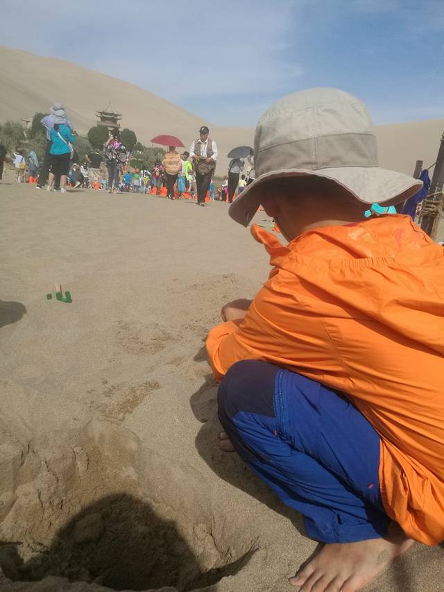 鸣沙山玩沙的娃