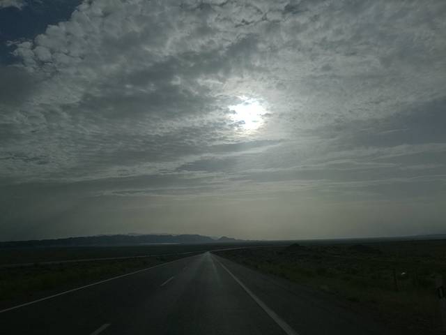 往大柴旦的路上超大的绿化带,阴天