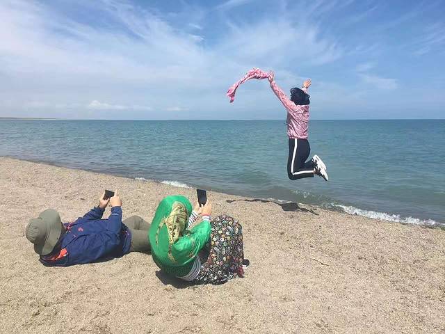 D3(8月5日),青海湖边闲逛,出发黑马河乡,入住黑马河云海宾馆。第二天起来在客栈吃了早餐,就去青海湖边闲逛。开着车经过二郎剑景区,没进去,过了二郎剑景区后,有一条路开到青海湖边的,可以沿着湖边一直开。车比较少,走走停停拍照,一直开到了一个叫“天鹅湖”的地方,是牧民自己围起来的,开价20元一个人,最后砍到60元整车。这个地方强烈推荐。没什么人,车开进去以后可以一直开到湖边,湖边有细细的沙子,娃们玩水,大人拍照,不亦乐乎。在湖边玩了整个上午,遇到开哈弗的可能是蒙古族的两男两女,车陷进湖边的沙子里出不来,与CC一起帮他们把车弄了出来,心情大好。中午回心灵树生活艺术家客栈吃午饭,想着几天没吃猪肉鸡肉了,就点了排骨和鸡肉,不好吃,还是那句话,在那地方就得吃牛肉羊肉。午饭时高反头痛得厉害,想吐的感觉,胃口不好,只喝了点汤,吃了个芬必得,躺在客栈的椅子上休息了一会儿,头痛缓解了以后大家才出发黑马河。下午早早就到了黑马河,在云海宾馆办了入住手续,在周边转了一下,在黑马河边看到了成群的湟鱼,当地人根本不屑一吃,跟宾馆老板了解了一下看日出的地方,开车前往踩点,正好娃们又可以在湖边玩水,大人拍照。从主干道通往湖边的路很小,刚好够两辆小车会车,宾馆老板提醒早上去看日出是会堵车的。晚饭就在宾馆旁边的西宁伊风阁炕锅肉吃,好评,唯一不好的就是没有烤串,还不给外带,只好吃完饭后又去外边搞了几个烤串与烧饼,味道极佳。买烤串时遇到几个包车走大环线的老乡,也是缘分。这天晚上早早睡觉,准备第二天青海湖边看日出。