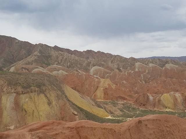 D9(8月11日),上午张掖七彩丹霞,下午出发祁连,住祁连海北卓尔山农家驿站。早上7点50左右,客栈送来了早餐,吃完早餐收拾好行李退房,往七彩丹霞开去。来到北门,新开的一个门,这个门人不是很多。七彩丹霞说是上帝不小心打翻了调色盘,于是把那片山染成了这样的颜色,还是可以去看看的。睡美人、大扇贝……很形象。据说那边的日出日落很漂亮,留点念想吧。我们登上了两个观景台,看过之后便出景区了。在景区外面找了个饭店吃饭,味道一般,中评。午饭后便往祁连开去。未出张掖时经过黑河——张掖的母亲河,河水是从祁连山上积雪融化而来,在岸边停了车,下河玩了下,风很大,捡石头,玩水,小孩们很开心。停留的时间不长,最后沿着G227国道开往祁连,途中经过扁都口,油菜花已经谢得差不多了,还有青稞什么的,大片的作物还是很壮观,下来拍了几张照片,没过多停留。在峨堡镇转向S302省道,说是省道,比国道还要好走,就像高速一样。晚上8点半左右到达卓尔山农家驿站,是家庭旅馆,办理入住手续,如愿入住205,见携程好多人说205好,于是订房时特意跟老板娘说了一下,让她留房,到了才知道原来205房是单边位,开了个窗,可以望见牛心山。收拾了一下就在旅馆吃晚饭,挺好,好评。订了第二天早上的鲜牛奶、自制酸奶,都是5元一杯。晚上可以看见很多星星,BB根据幼儿园学的星座知识发现了“夏季大三角”等等。洗洗睡觉,准备第二天开往八一冰川。据说这两天有英仙座流星雨,于是调了1点多的闹钟,只是闹钟也没能叫醒我。