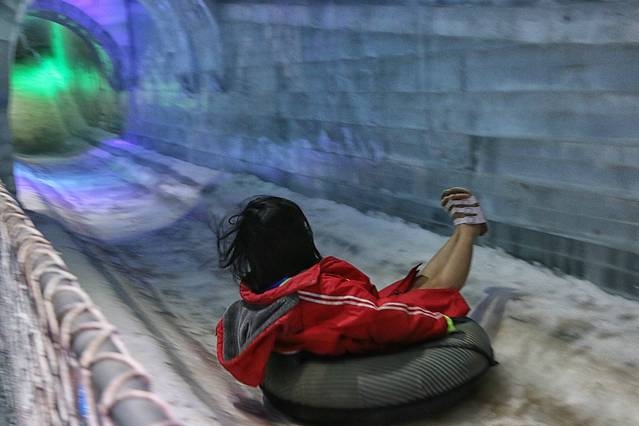 冰雪世界不仅仅只是看,还能玩,相当刺激的滑梯。滑下来的时候没了方向感,停好后站起来的时候头撞了下,晕晕的。跟沙雕园一样,每年的主题也不尽相同,可以期待下个夏天翡翠湾的新像。