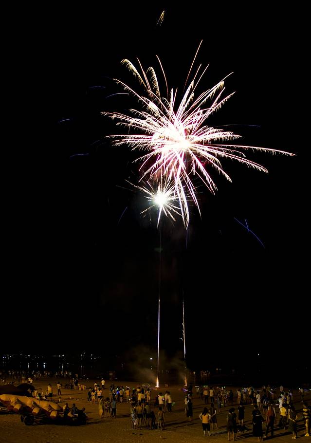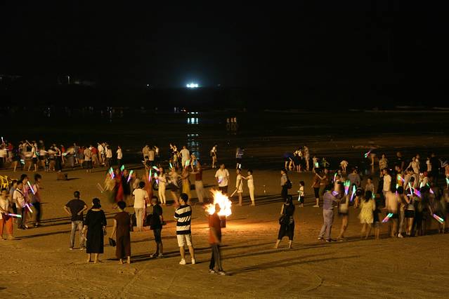 夜晚的翡翠湾依然热闹,沙滩上围着篝火的人群放着大烟花,散着步吹着风的情侣,都在享受夏日海滨的清凉。