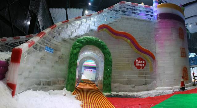太兴奋忘了拍入口了,进入冰雪世界需要穿上里面的大衣,一开始觉得自己挨得住,但进去后才觉得自己太天真,燥热的夏天在一瞬间变成零下10度的严寒。
