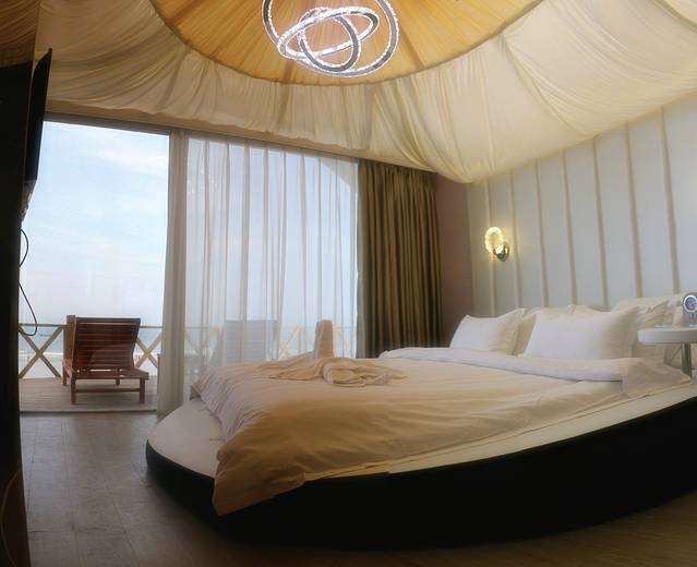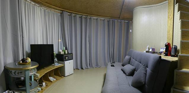 大海螺(好像是这么叫的吧),位于自驾房车营地的大沙丘上,超大的海景落地窗,房间内的灯光美轮美奂,还有音质不错的蓝牙音响,宽大的圆床,窗前的躺椅,真是十分享受与悠闲。