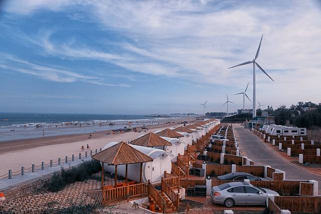 导航目的地设置“翡翠湾”,沿着沈海高速一路南下,驱车4小时就到了翡翠湾,过了检票口后到达翡翠湾海景度假酒店。酒店拥有树屋、鸟笼、海螺、蜂巢等各种创意十足的住宿,配套有餐饮、会议、露天烧烤等。这次入住的是小小鸟笼,出门就能拥抱整片沙滩,也可以足不出户,拉开窗帘看着发生在这片沙滩上的故事。