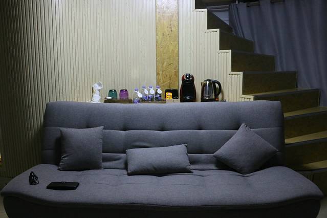小鸟笼1层是客厅和浴室,客厅提供免费矿泉水,咖啡和咖啡机,茶叶需要收费。