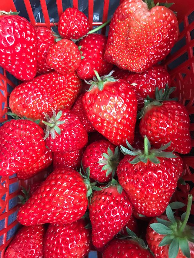 草莓有奶油味的,咖啡味的,等等,香甜香甜的,很美味,只要30块一斤,自己摘挺好。只是草莓🍓确实比较娇贵,在旅游大巴上一路颠簸回到家,就处处碰伤啦,不管是观感还是口感都大打折扣。