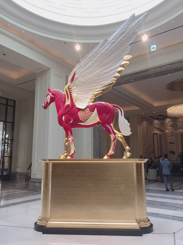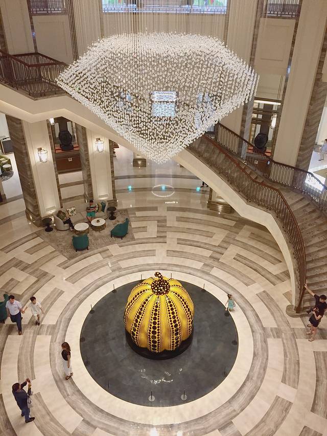 逛了一圈的最大感觉就是震撼,分不清这是一家艺术馆还是一家酒店。里面的装饰物,从大厅的黄金奔腾马、草间弥生的斑点南瓜、钻石巨型水晶吊灯到Alessandro Mendini的代表作品“普鲁斯特椅子”,以及包括DemienHirst、李康昭,吴受焕等国内外大师们的著名作品100多件在内的共2700多件艺术作品,绝对可以称得上是一座水准较高的艺展。