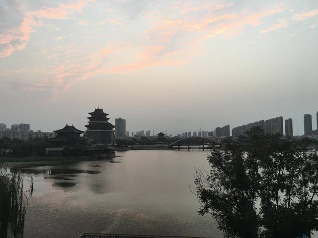 坐客梯直上四楼,往西走到能到看小湖的地方。晚霞会为你呈现出现代高楼与古典楼阁的剪影,而这些,凝在面前,融在湖中,添上写微红的云彩,这一景,流连忘返。五星酒店和景点对立在小湖的两岸,这里的视角好像恰到好处,给你搬上一副巨画,让你静静感受。也许不经意见所见的一些景,才会成为难以忘怀的地方。