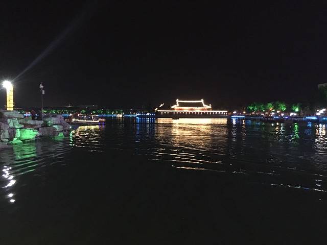 夜晚散步,湖边总是个好去处,风携着水的气息,霓虹下的水色让人着迷,总是自然的晕开光色,一点点变淡,淡到眼前,美到心里。一石一木,一水一亭。