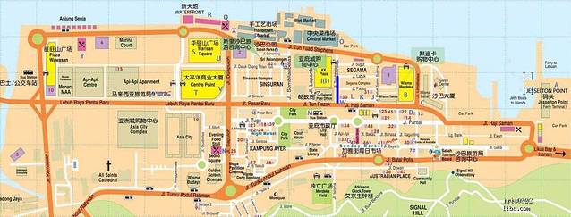 KK市区不大 换钱、租车、购物主要集中在地图右边中间的主干道上