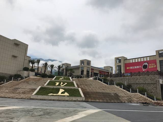 车只把我们送到了游客中心,这里离山脚下还有一段距离,这里有很多商铺,索性在这吃了中饭,等会好有力气爬山。一下车就有很多人来拉客吃饭的,随便跟着一家进去了。