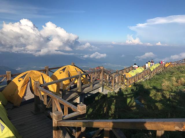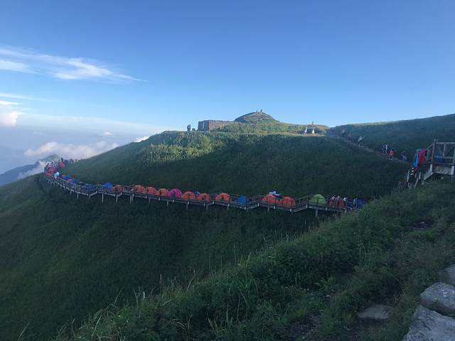 木栈道上满满的帐篷