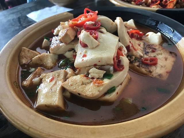 萍乡豆腐。吃下来饱饱的,有力气爬山了。我们叫了个黑车,10元/人把我们送到山脚下。