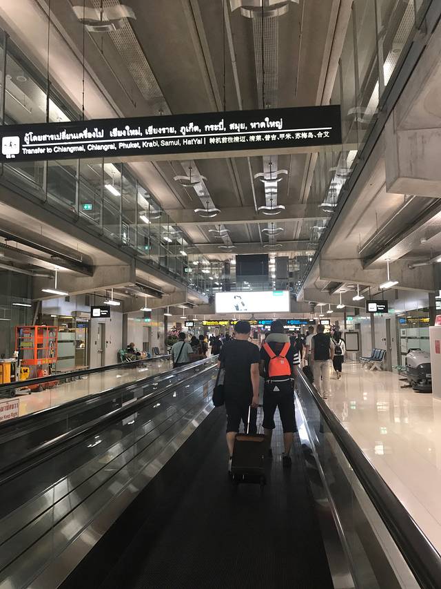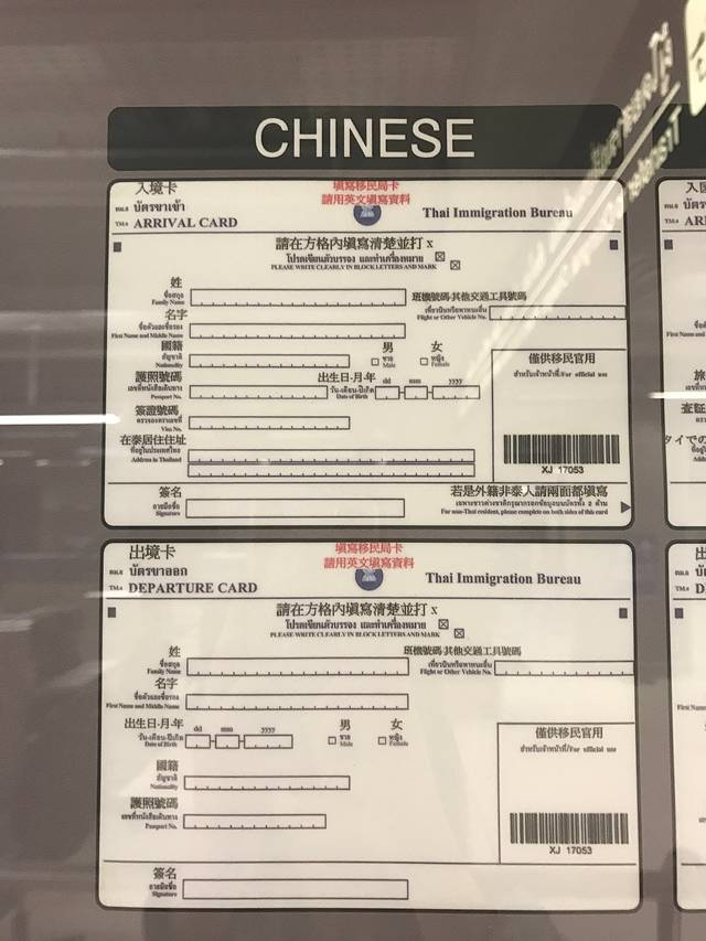 曼谷有两个机场,分别是廊曼机场和素万那普国际机场。廊曼机场是较早之前建的,规模较小,机票也相对更便宜。素万那普国际机场规模更大航班也更齐全,这次选择飞往素万那普机场也是因为飞往甲米的航班廊曼没有。在飞机降落之前,乘务员会给每个人分发入境卡和出境卡,上面需要填写每个人的信息,这张卡在过关及直接酒店入住等都需要用到,必须妥善保管。这张卡不用着急在飞机上填好,降落之后在过关之前的展示台上有模板对照着写。