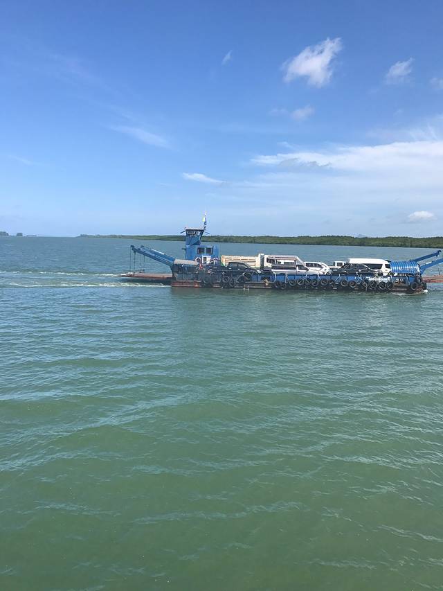 兰塔其实是甲米府的一个岛,所以去往兰塔的途中是需要轮渡的,因为桥梁的兴建,现在去兰塔只要一次轮渡就好,车开到船上,大概20辆车左右满船即走。