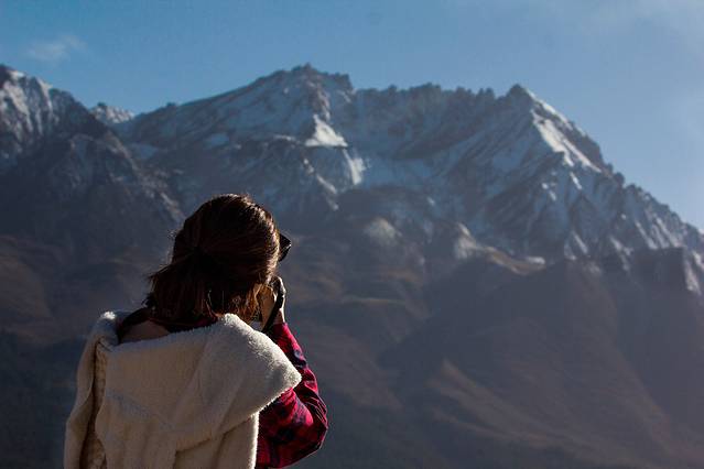 路上不断地帮别人拍照,然后再请别人帮我们拍照。雪过天晴的天空甚是蓝,放多几张照片。